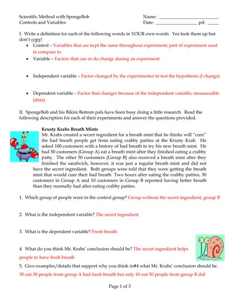 Read Spongebob Scientific Method Worksheet Answers Epub